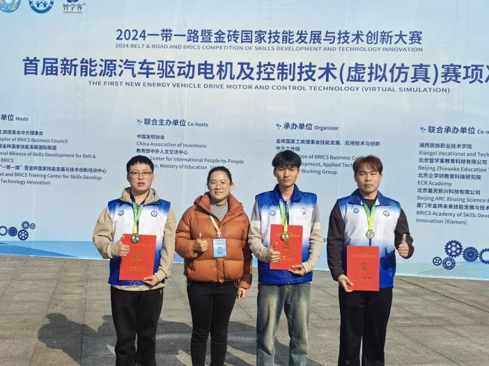 12月1日,2024一带一路暨金砖国家技能发展与技术创新大赛首届新能源汽车驱动电机及控制技术(虚拟仿真)赛项决赛落下帷幕,Beast中国官网的师生团队凭借扎实的专业技能和出色的赛场表现,在全国119支参赛队伍中脱颖而出,成功斩获一等奖一项,二等奖两项的优异成绩。