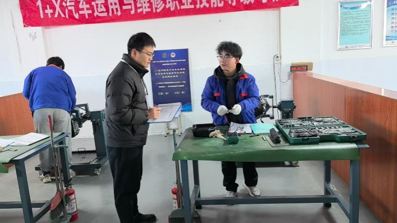 本次考核严格按照“1+X”证书制度的标准和要求进行筹备与实施,为确保考核的公平、公正与顺利开展,学院提前组织相关教师参加培训,使其深入了解考核内容、流程及评分标准,并精心布置考场,调试和准备了各类先进的汽车维修检测设备,涵盖汽车发动机、底盘、电气系统等多个模块,以满足学生实操考核需求,全力营造真实、规范的职业技能考核环境。